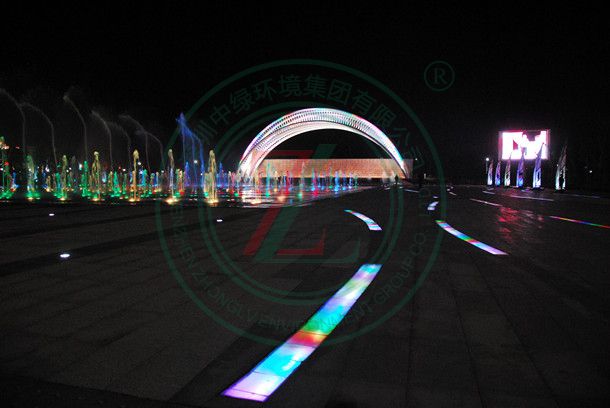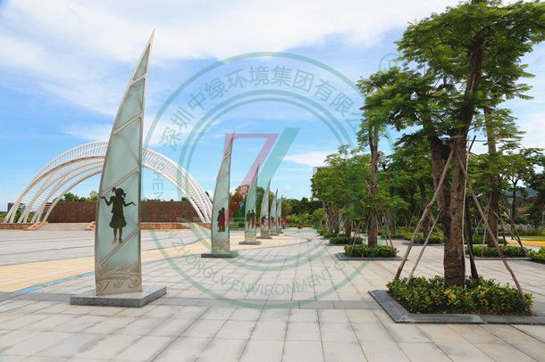 廣場地基處理、廣場鋪裝、廣場綠化和公園小品建筑、花壇、園路、噴泉、照明、園林設施及設備安裝、給水、排水等。