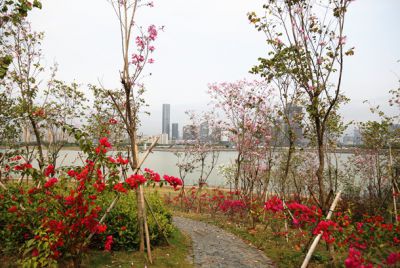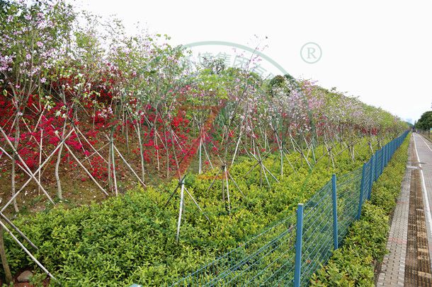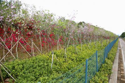 以開花喬灌木連片種植,形成森林花帶和花海效果,打造成片區(qū)標(biāo)志性景觀并美化環(huán)境。