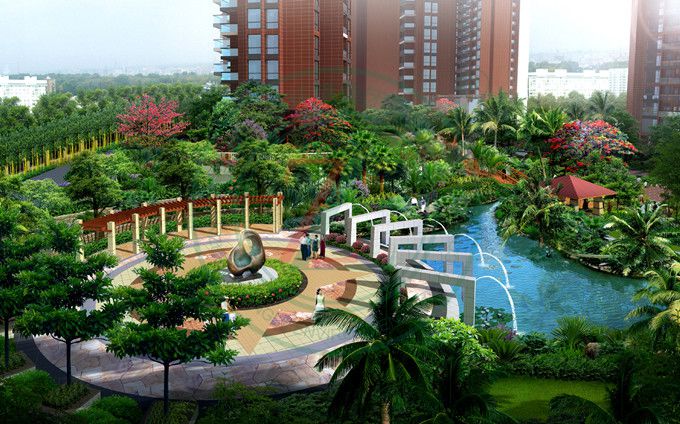 蓮塘地塊羅湖區保障性住房項目園林景觀設計立足于強化總體規劃及建筑設計特色,引入自然綠色概念,根據澳洲昆士蘭省北部的熱帶度假區為模式的景觀設計理念,燦爛的陽光配合熱帶雨林般的植物群落,復制極具自然的、茂盛的熱帶植物群落,利用充沛雨量的回收系統所帶來的充足水源營造自然溪流、水景,根據高差變化設置特色休閑臺地空間,營造一個立體化的充滿自然氣息的住戶花園。