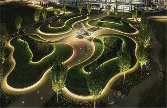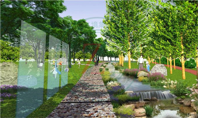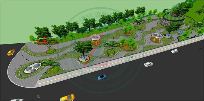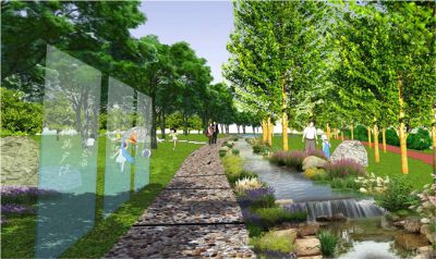 設(shè)計(jì)改造長度南北約長700米,東西約長44—80米 ,面積約為4.5萬平米。設(shè)計(jì)分為街頭公園區(qū)、廣場活動(dòng)區(qū)和生態(tài)公園區(qū)三個(gè)功能分區(qū)。景觀設(shè)計(jì)充分體現(xiàn)水滴、水流和水岸的概念;生態(tài)公園區(qū)充分體現(xiàn)生態(tài)理念。植物的設(shè)計(jì)注重季相變化,成片成叢成林種植,讓人印象深刻;同時(shí)引人了香花植物。燈光的設(shè)計(jì),除了滿足基本的功能性照明外,特別突出效果和特效設(shè)計(jì),營造極具現(xiàn)代感卻不失浪漫的夜景效果。
