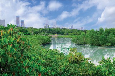 工程內容:修復種植面積約17.5372萬m2。主要建設內容為沿海岸潮間帶整治及紅樹種植、海岸鹽生植物恢復、外來入侵植物整治、鳥類棲息地恢復、紅樹及半紅樹林恢復等。項目的建成為廣大市民提供了優質的觀光游覽、休閑娛樂和科普教育服務,并榮獲中國風景園林學會科學技術金獎。