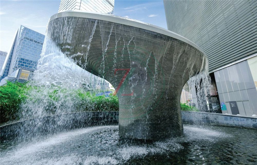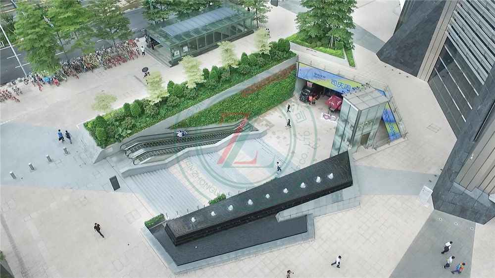 總景觀面積約30700m2。工程內(nèi)容主要為地面鋪裝、屋頂綠化、支撐器石材架空地板鋪裝、座墻裝飾、垂直綠化、水景噴泉、花崗巖踏步石材安裝、菠蘿格木平臺安裝、立體墻面干掛石材裝飾、墻體立面石材干掛、水景、照明工程、機電工程、噴灌系統(tǒng)等。