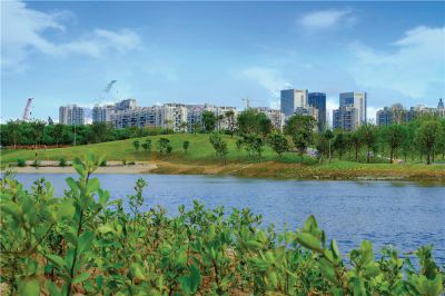 園林綠化面積約29萬m2,包含綠化、山體覆綠、園路及廣場鋪裝、園林設施小品、園區標識、水池(景)、景觀橋、綠地噴灌系統、景觀照明系統、圍墻、大門入口等景觀工程的施工及綠化成活期養護、經濟林養護。